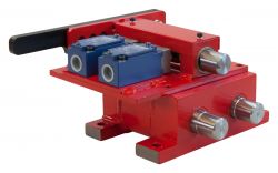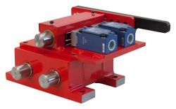 Mechanische Sicherheitsverriegelung für Wartungs-, Reparatur- und Reinigungsarbeiten. Durch Betätigung des Handgriffs wird der Bolzen aus der Ruhelage in die Verriegelungsstellung gebracht, damit keine unbeabsichtigte oder unbefugte Maschinenbewegung möglich ist.