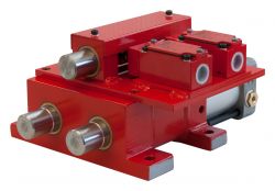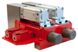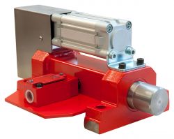 Pneumatische Sicherheitsverriegelung für Wartungs-, Reparatur- und Reinigungsarbeiten (Wartungsabsteckung) sowie für den Einsatz im Maschinentakt (Indexierabsteckung). Der Verriegelungsbolzen wird durch den Luftzylinder aus der Ruhelage in die Verriegelungsstellung gefahren, damit keine unbeabsichtigte oder unbefugte Maschinenbewegung möglich ist.